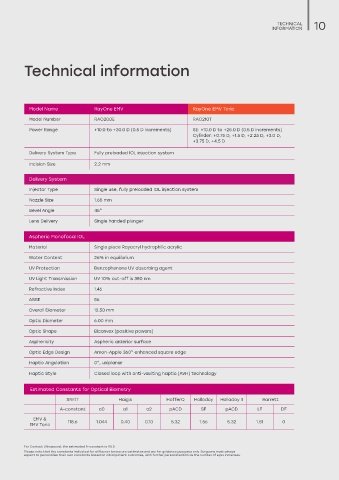Power Range +10.0 to +30.0 D (0.5 D increments) SE: +10.0 D to +25.0 D (0.5 D increments)